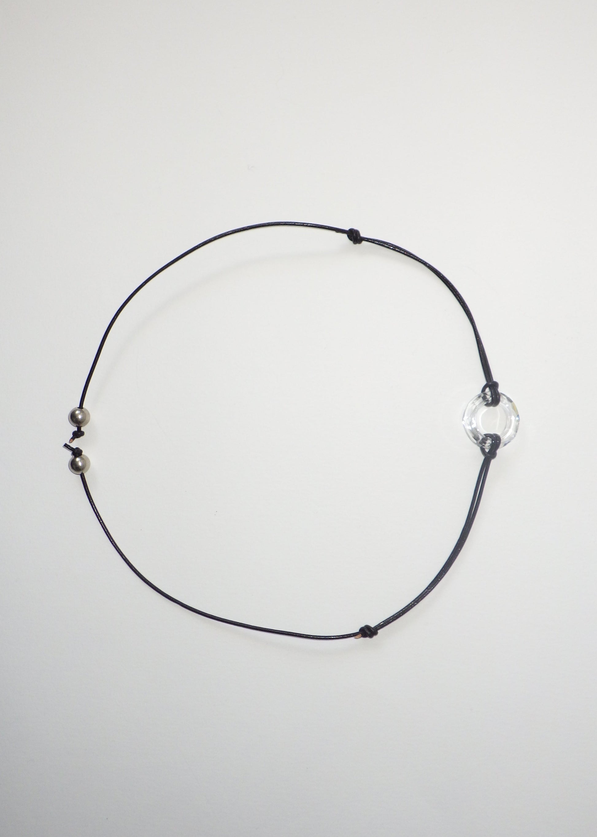 Description - Swarovski crystal Donut- premium leather - stainless steel bead ends