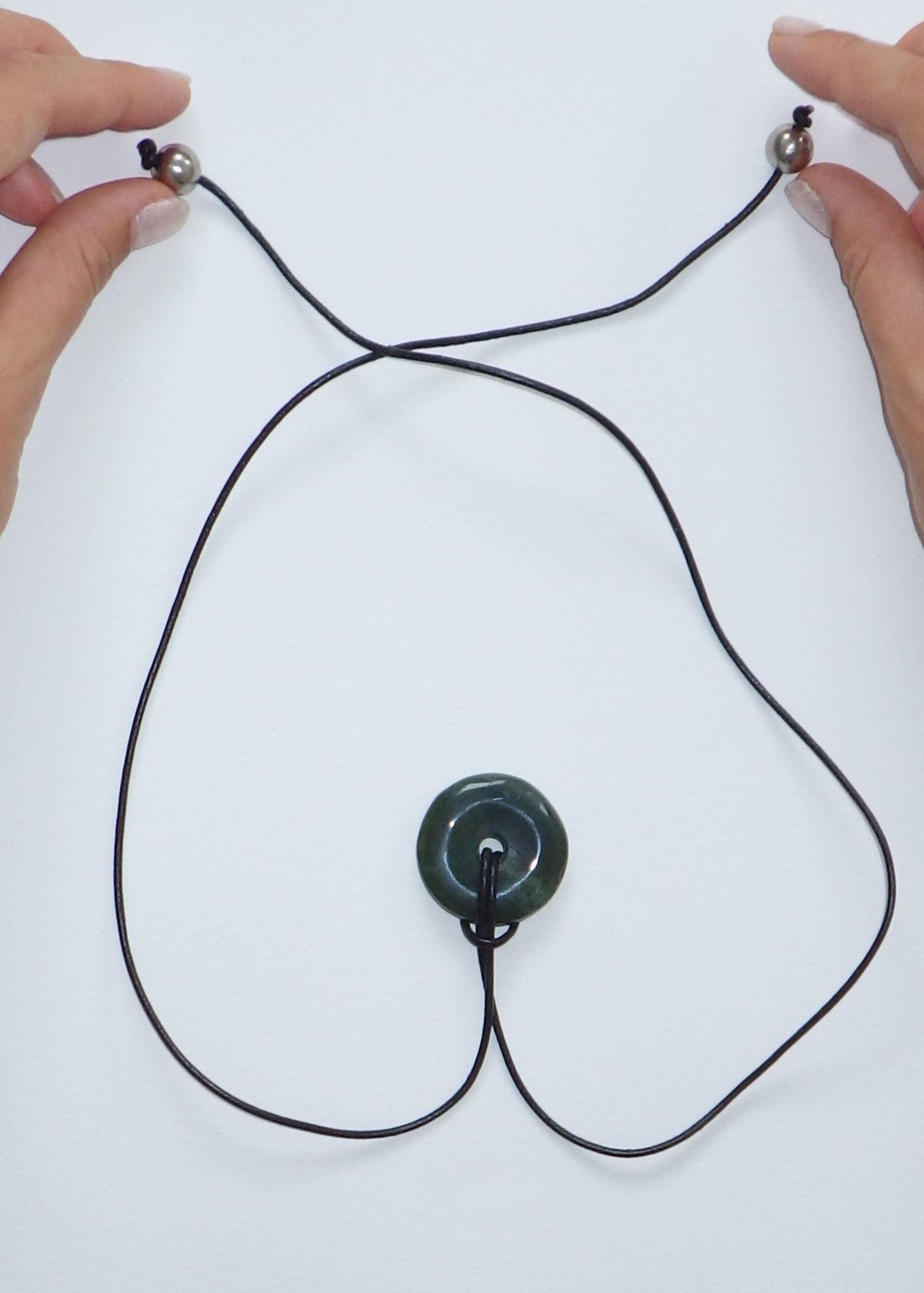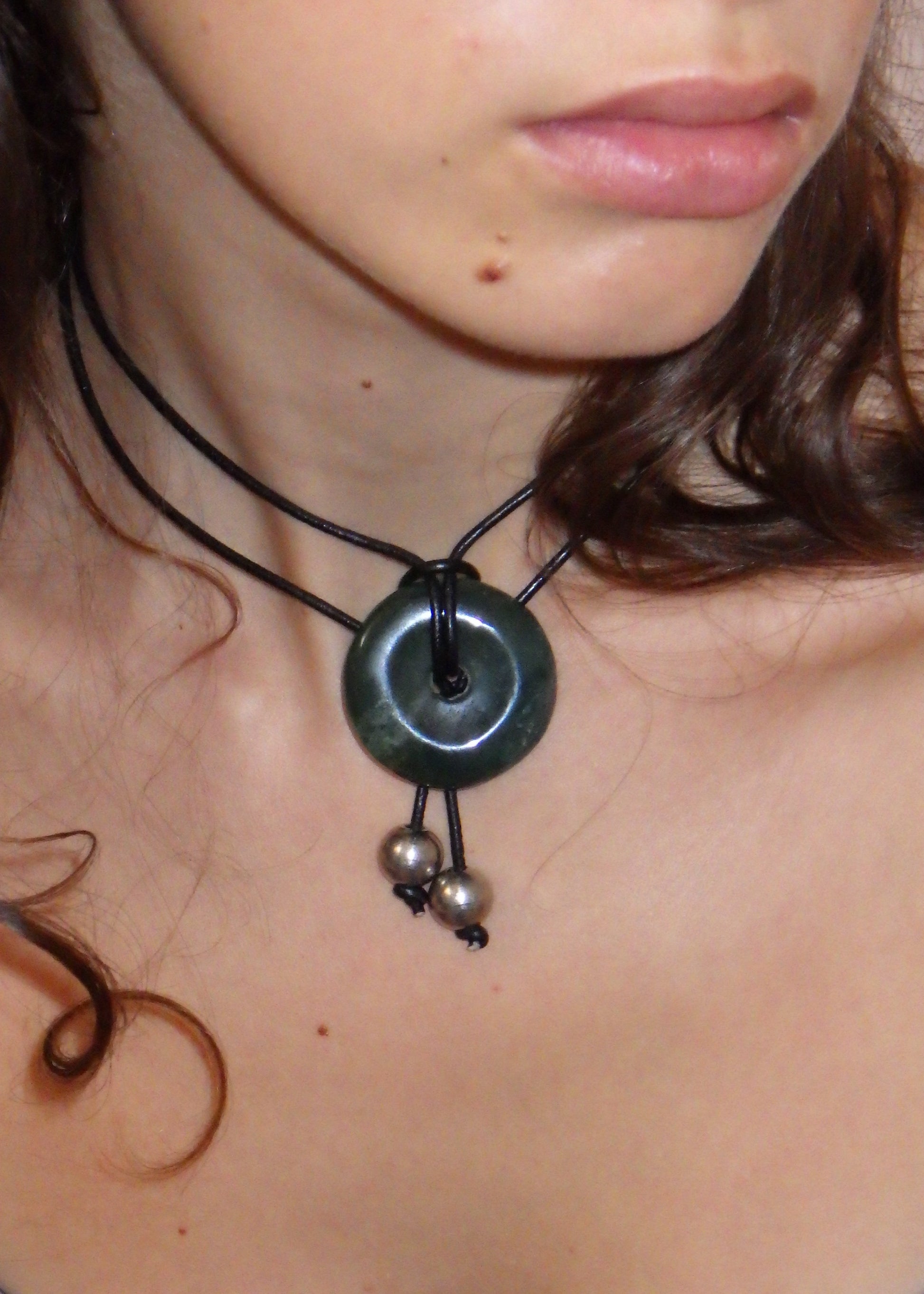 Description - Agate Donut - premium leather - stainless steel bead ends